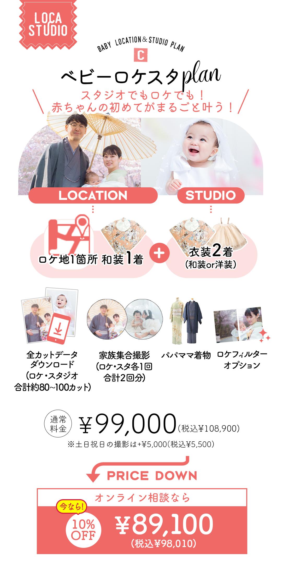 ※土日祝日の撮影料は+¥5,000 (税込¥5,500)