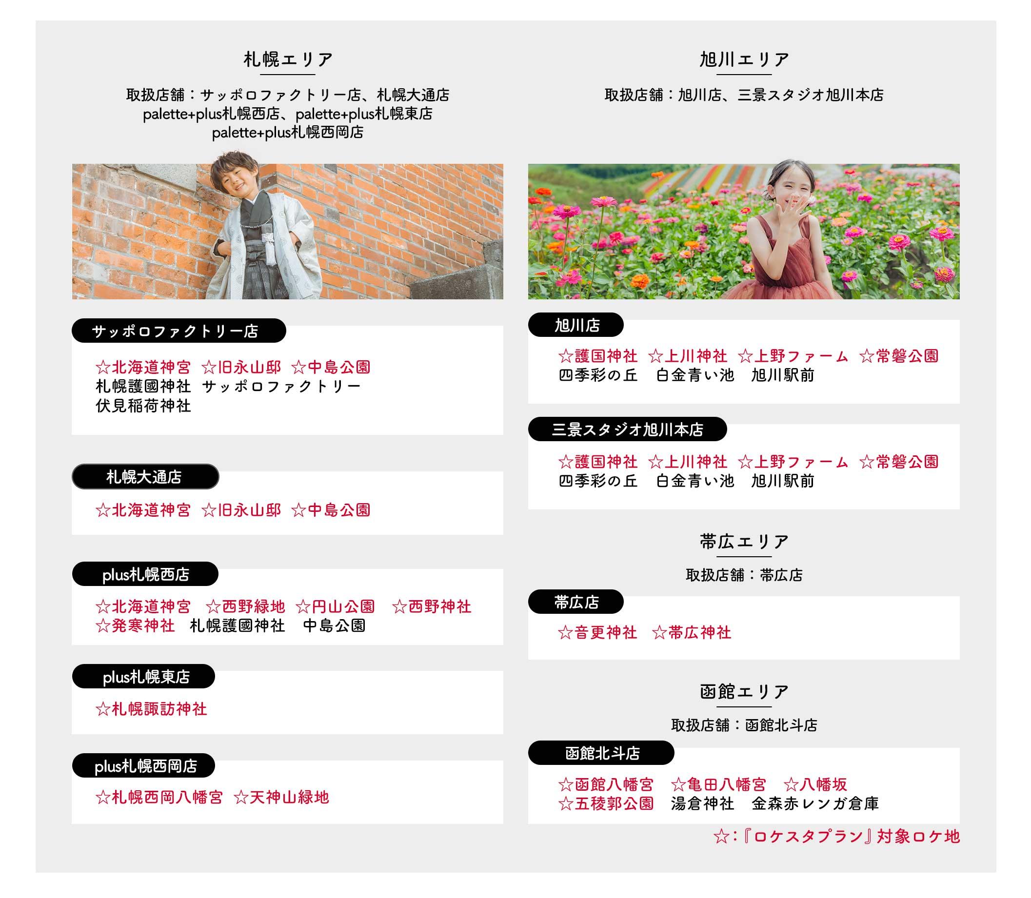 対象:サッポロファクトリー店・札幌大通店・札幌西店・札幌東店・札幌西岡店・旭川店・帯広店・函館北斗店・三景スタジオ旭川本店の対応ロケ地