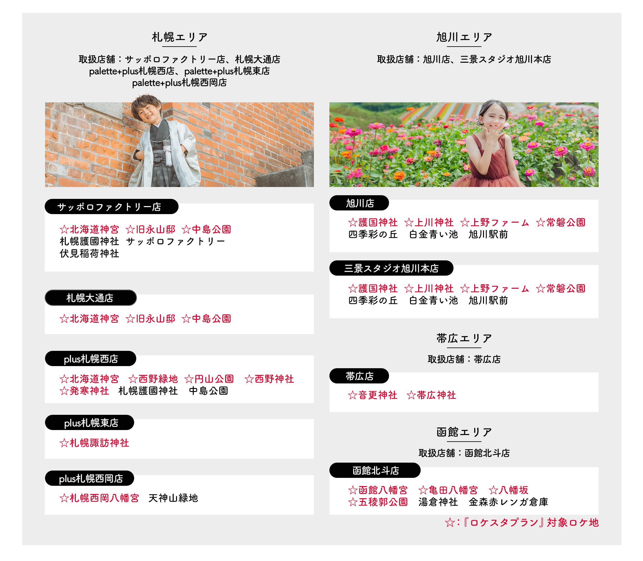 対象:サッポロファクトリー店・札幌大通店・札幌西店・札幌東店・札幌西岡店・旭川店・帯広店・函館北斗店・三景スタジオ旭川本店の対応ロケ地